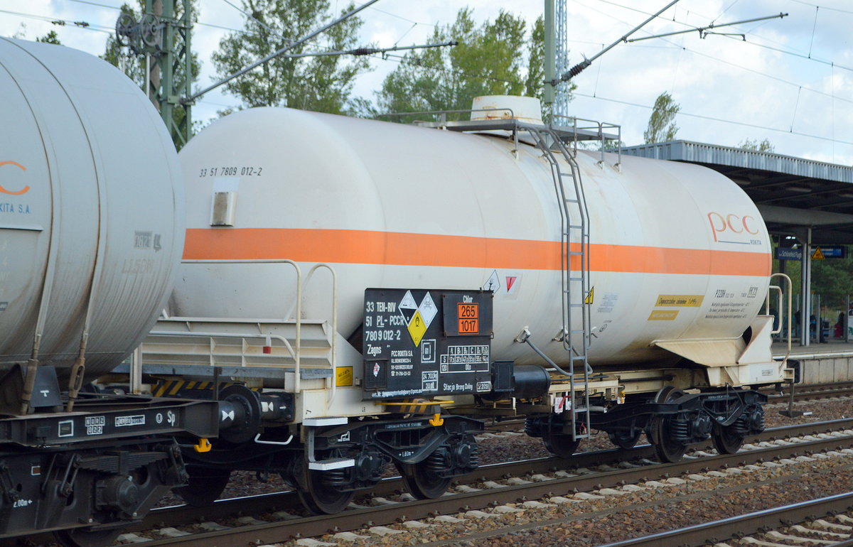 Wie neu aussehender Druckgaskesselwagen der polnischen Fa. PCC Rokita SA mit der Nr. 33 TEN 51 PL-PCCR 7809 026-2 Zagns (GE) (lt. Aufschrift wohl für das Ladegut Ladegut Ethylenoxid mit Stickstoff vorgesehen) in einem gemischten Güterzug am 02.07.24 Höhe Bahnhof Schönefeld b. Berlin.