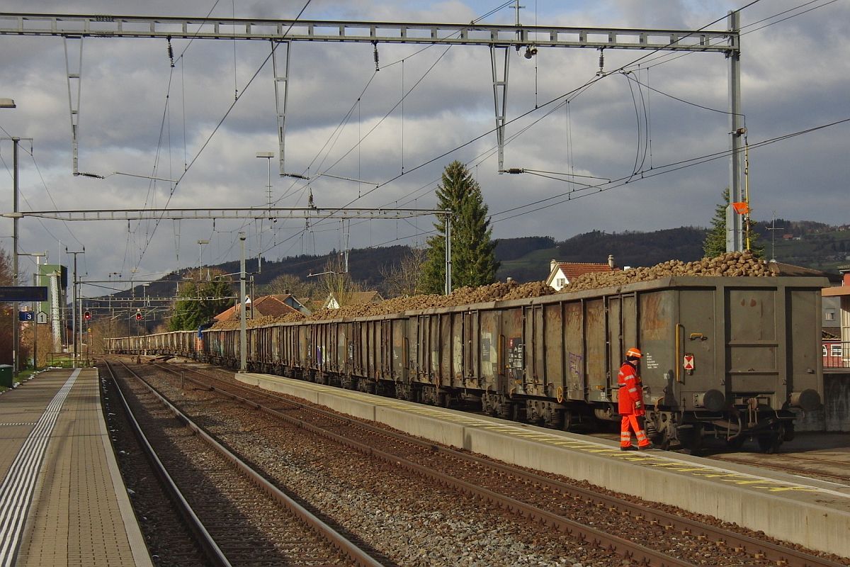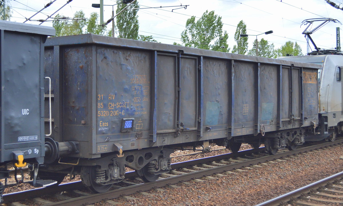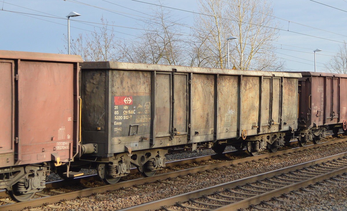 Offener Drehgestell-Güterwagen vom Einsteller Axbenet S.r.o. mit der Nr. 31 RIV 85 CH-AXBSK 5321 291-7 Eaos mit Logo von ecco in einem Ganzzug offener Güterwagen am 18.12.19 Bf. Saarmund.