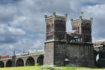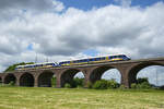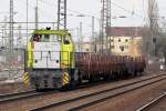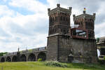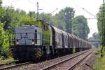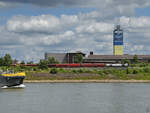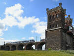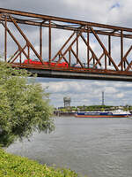 Die Diesellokomotive V 156 (274 107-8) von Captrain zog Ende Mai 2025 einen Güterzug über die Duisburg-Hochfelder Eisenbahnbrücke.