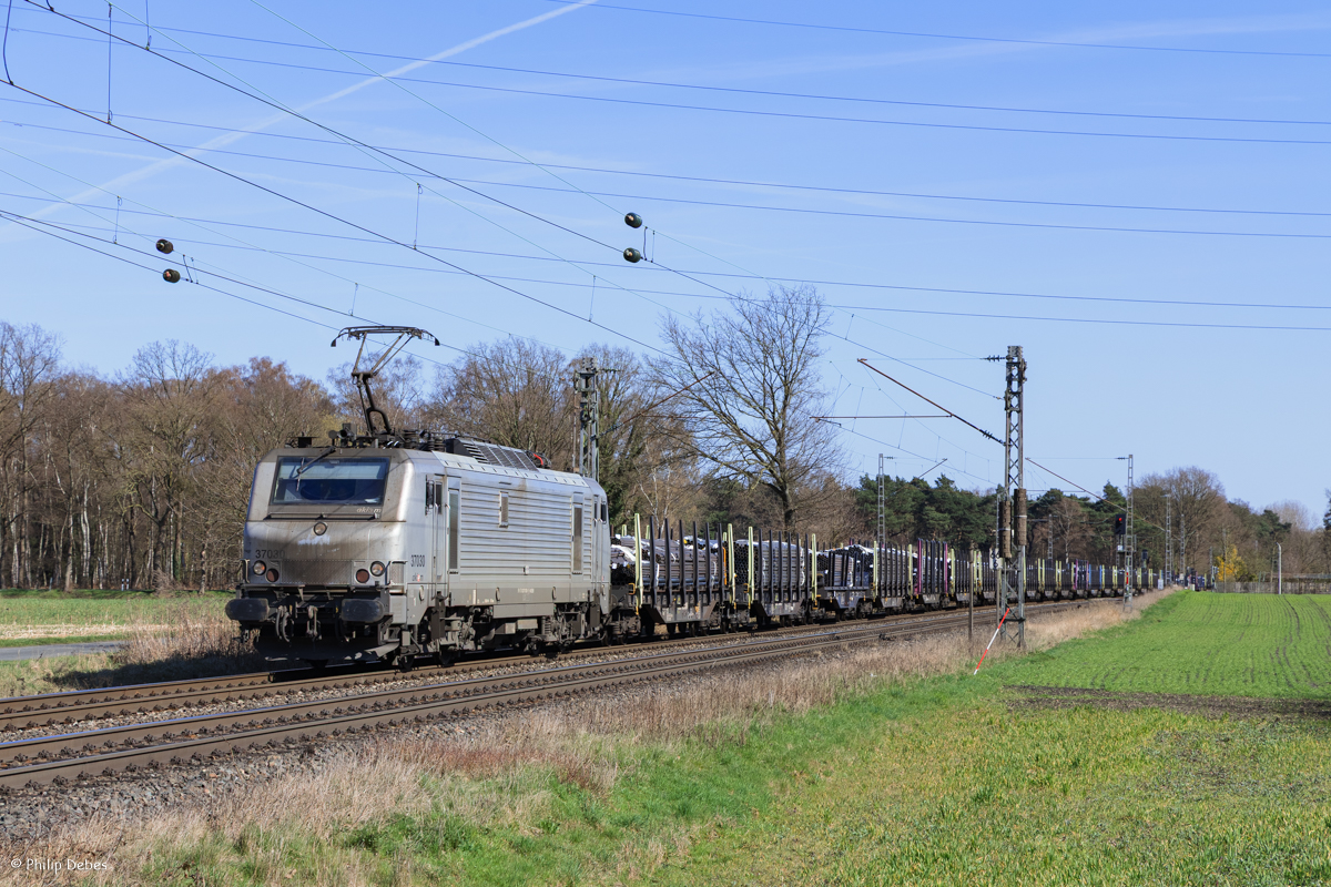 ECR 077 010-2 mit einem Stahlplattenzug in Gelsenkirchen-Bismarck 8.8.2016