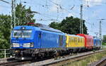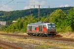 Das Unternehmen Railsystems RP aus Gotha ist dafür bekannt, etliche ehemalige Loks der Deutschen Bundesbahn - insbesondere aus der Baureihe 218 - bestens gepflegt und in historischer Lackierung einzusetzen. Daneben nennt man aber auch hochmoderne Fahrzeuge sein Eigen, wie zum Beispiel den Dual Mode Vectron 248 002. Die Zweikraftlok kam am 09. Juni 2023 vor dem mit Schnittholz beladenen DGS 59766 von Kaufering nach Brake zum Einsatz. Bei Nordheim in der schwäbischen Lechebene konnte ich den besagten Zug aufnehmen. Besonderes Augenmerk verdient die Gestaltung der Seitenwand der Lok, die auf den höchst unterschiedlichen Fahrzeugpark des Unternehmens hinweist. Die Loks der Baureihe 151 und 218 sind stilisiert wie in einem historischen Katalog des Modellbahnherstellers Märklin aus den 1960er Jahren dargestellt. Eine gelungene Reminiszenz wie ich finde.