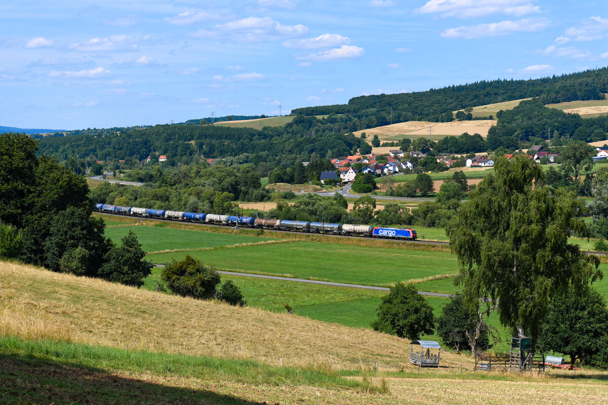 143 941-3 (Lok 123) mit einer Schwesterlok der RBH Logistics als Kesselzug fahren in Radbruch auf der Bahnstrecke Hannover–Hamburg (KBS 110) Richtung Hamburg. Bild durchlief die Selbstfreischaltung (Zug säuft ab). [6.7.2017 | 14:10 Uhr]