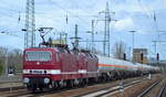 DeltaRail GmbH, Frankfurt (Oder) mit der Doppeltraktion "243 650-9" [NVR-Nummer: 91 80 6143 650-0 D-DELTA] + "243 559-2" [NVR-Nummer: 91 80 6143 559-3 D-DELTA] mit einem Ganzzug Druckgaskesselwagen am 22.04.21 Durchfahrt Bf. Flughafen BER Terminal 5.
