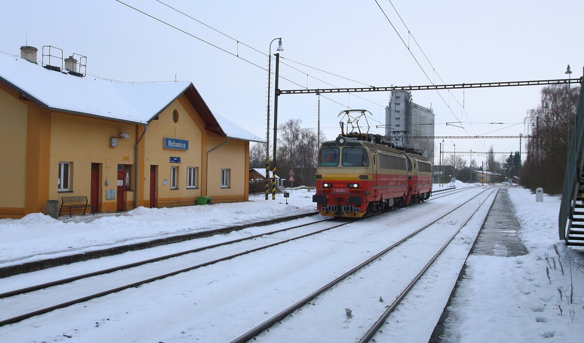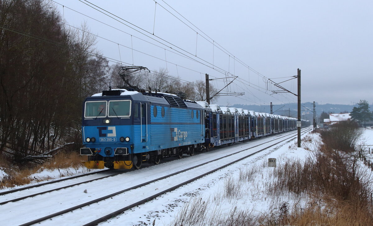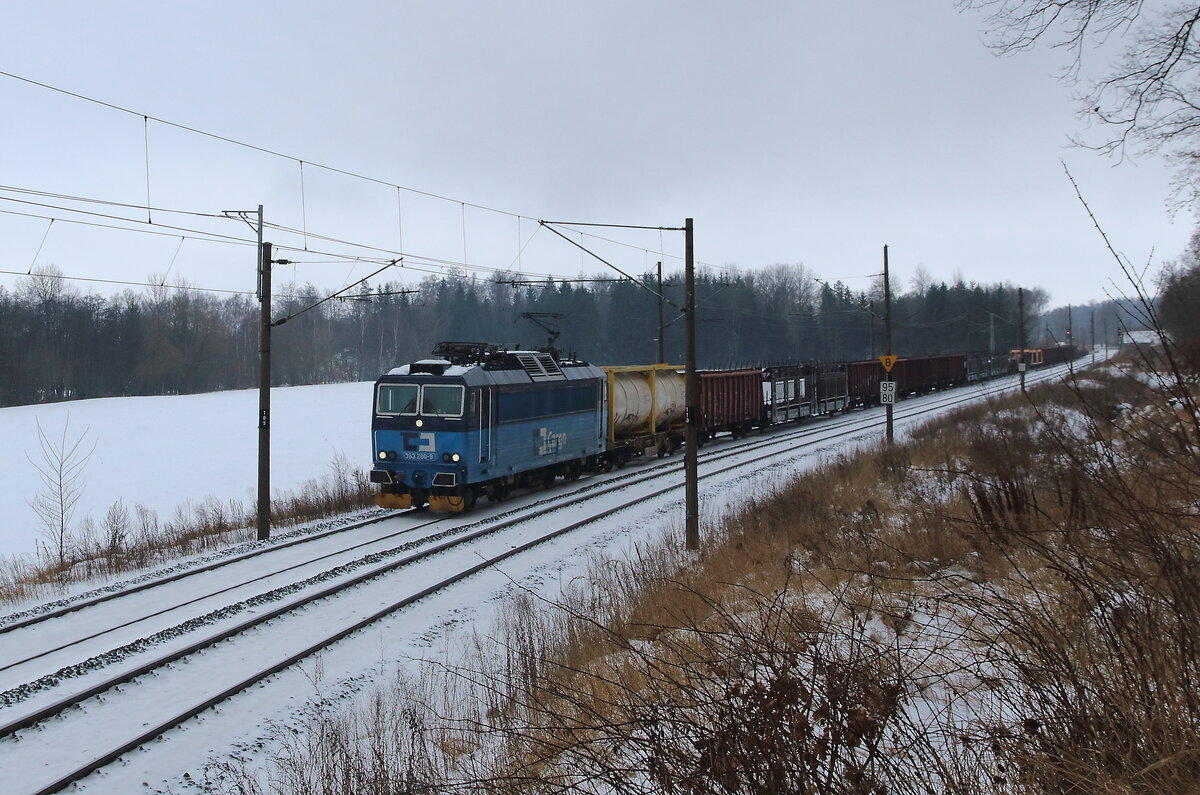 242 268-1 und 242 239-2 (CD Cargo) zu sehen am 04.01.26 mit einem leeren Kohlenzug bei Vokov.