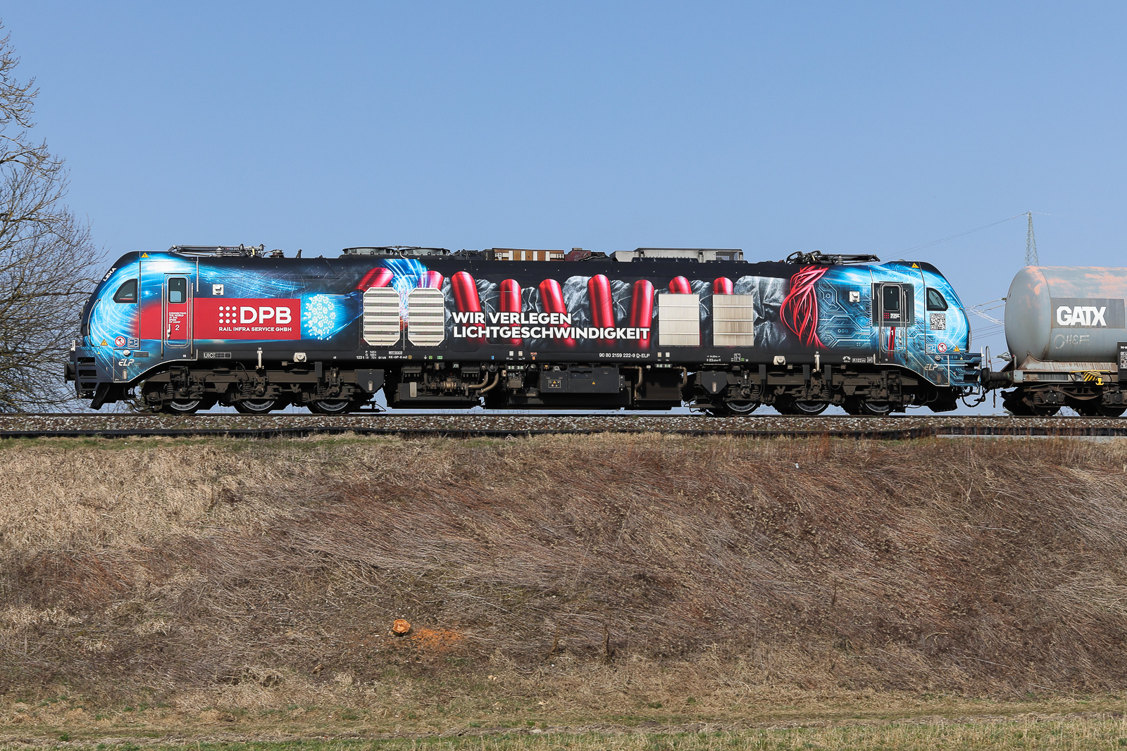 Mitteldeutsche Eisenbahn GmbH, Schkopau [D] mit der Eurodual Lok "159 217-9" [NVR-Nummr: 90 80 2159 217-9 D-RCM] und einem Ganzzug Druckgaskesselwagen (Vinylchlorid, stabilisiert) am 07.11.23 Höhe Bahnhof Niederndodeleben.