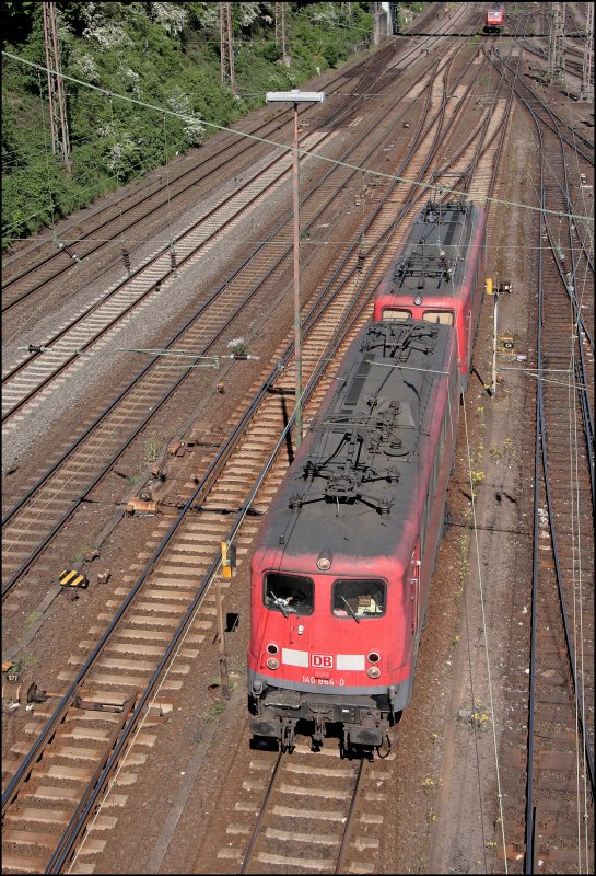 140 864 und 140 791 rückt in die Parkposition des Rangierbahnhof Hagen-Vorhalle ein. Hier wartet der Lokführer auf die Freigabe. (10.05.2008)