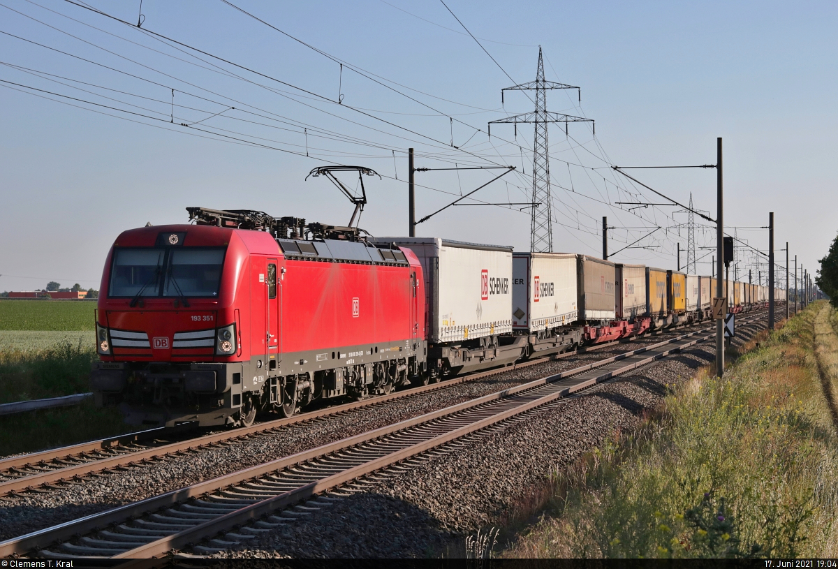 KLV-Zug (DB Schenker) mit 193 351-4 (Siemens Vectron) unterwegs in Braschwitz Richtung Köthen.