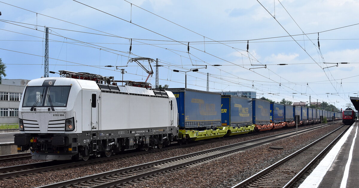 LOKORAIL, a.s., Bratislava [SK] mit der recht neuen noch weißen "6193 984" [NVR-Nummer: 91 80 6193 984-2 D-RAILL] und KLV-Zug Richtung Rostock Seehafen am 22.05.24 Höhe Bahnhof Schönefeld b. Berlin.