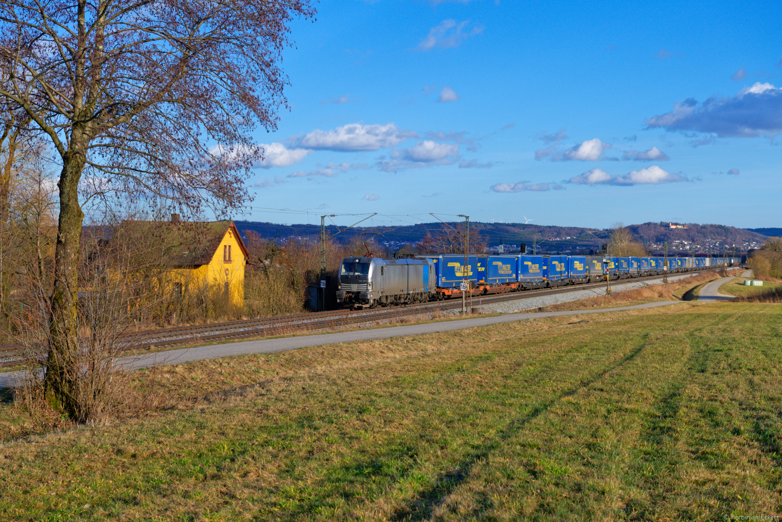 193 694 LTE mit einem KLV-Zug bei Gnötzheim Richtung Ansbach, 09.05.2021
