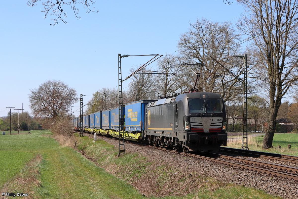 X4 E - 879 (Beacon) mit einem Sattelaufliegerzug in Hamm, 5. April 2025