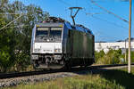 DK-DBCSC 185 324-8 zog am 07.05.2025 mit ihrem "BODE-Zug" aus dem Lübeck-Dänischburger Gbf (ALD G). Hier am Haltepunkt "Lübeck-Dänischburg IKEA" (ALD A).