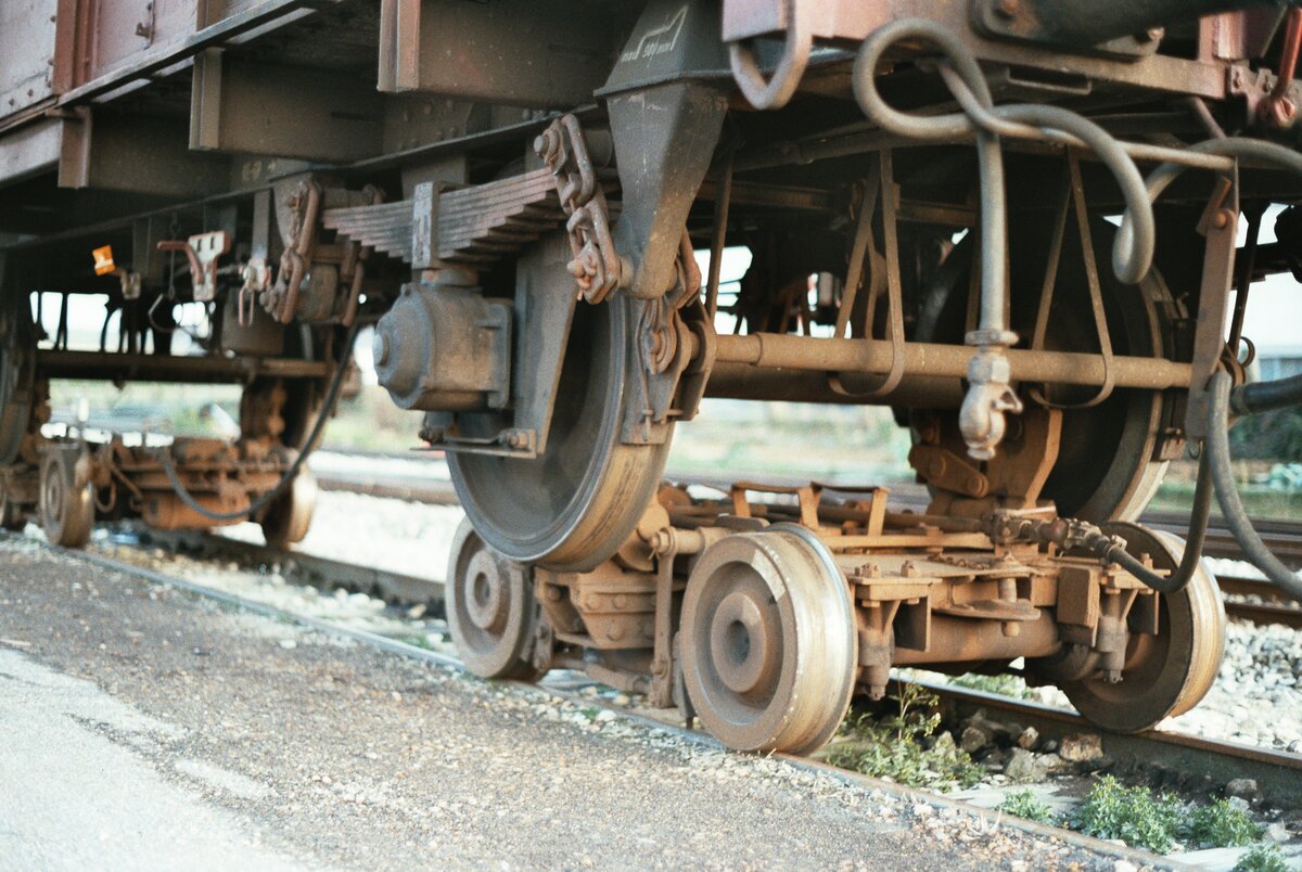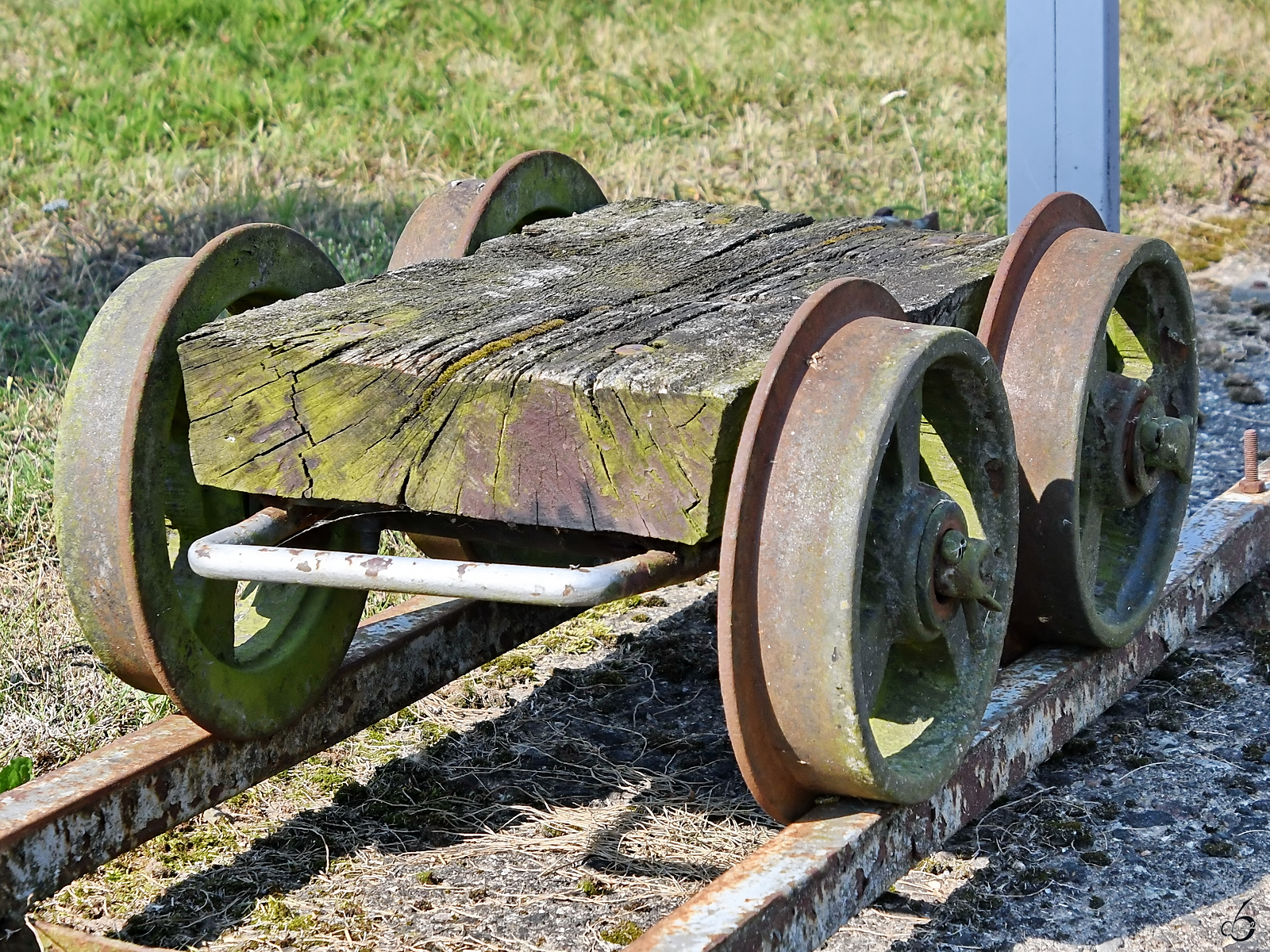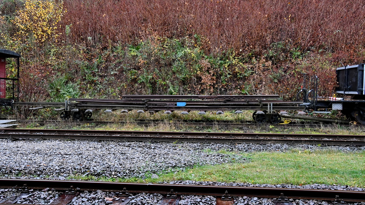 Dieser Gestänge-Hunt wurde in der DDR für den Transport von Gestänge und Rohren zwischen Lager und Bohrgerüst genutzt. (Erdölmuseum Reinkenhagen, September 2024)