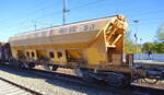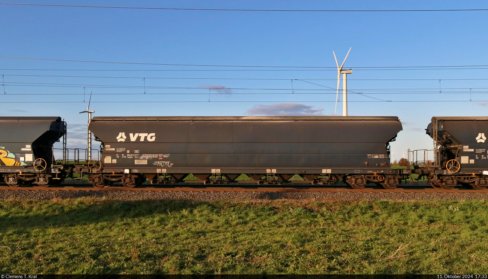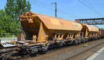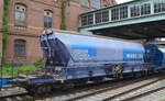 Graffiti kann immer wieder auch mal ansprechend sein, das haben ja selbst die verschiedenen Modellbahnhersteller inzwischen verstanden und bringen dementsprechende Produkte auf den Markt. Das sehen wohl diejenigen die für diesen Drehgestell-Schüttgutwagen mit Schwenkdach und dosierbarer Schwerkraftentladung für Getreidetransporte zuständig sind auch so und haben nur alle wichtigen Aufdruckfelder von Farbe befreit bei diesem Wagen vom Einsteller VTG Schweiz GmbH mit der Nr. 33 TEN 80 D-VTGCH 0764 027-3 Tagnpps (GE) Logo: INTERFRACHT CZ in einem Ganzzug am 13.03.23 Durchfahrt Bahnhof Berlin-Hohenschönhausen.