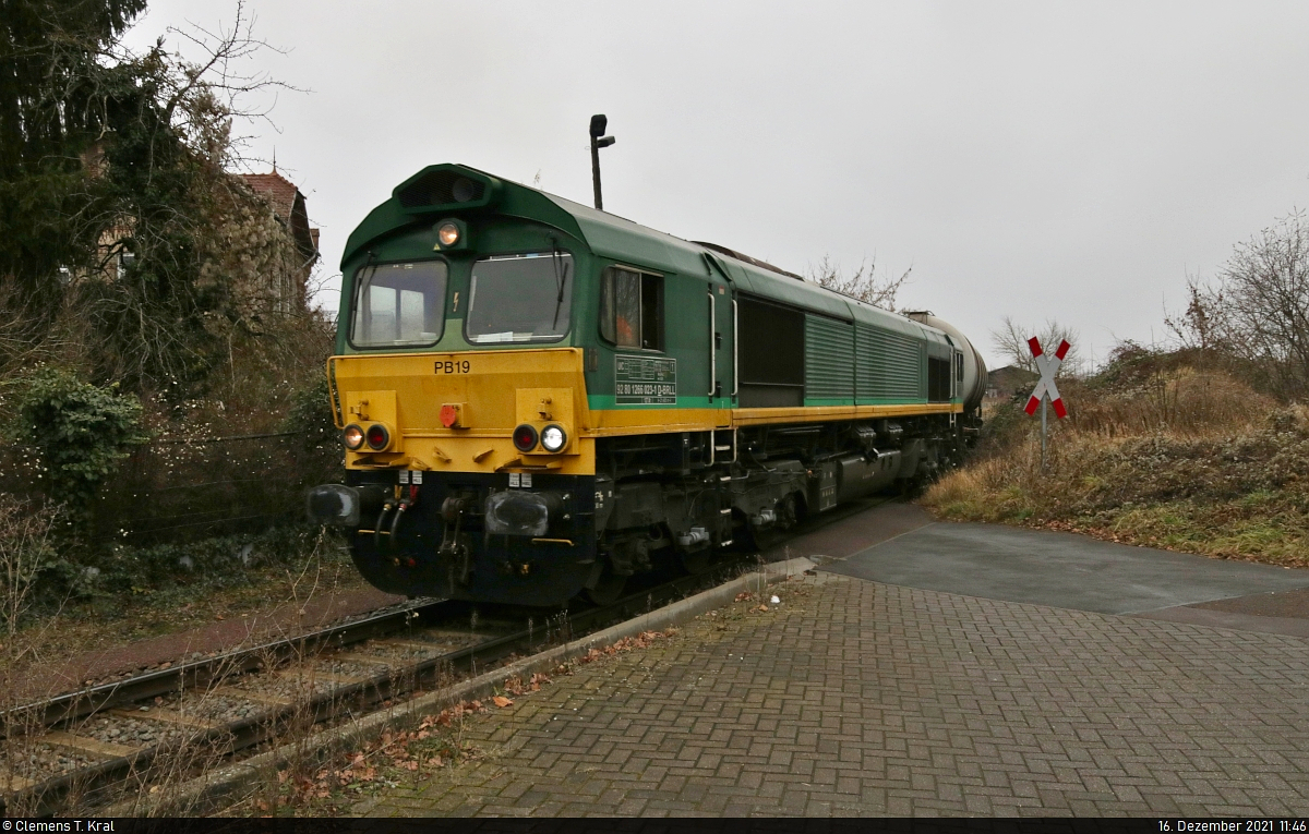 Zweiteiliger Containertragwagen mit der Bezeichnung "Laagrs" (27 80 4377 586-7 D-ERSA) auf dem Weg in den Hafen Halle (Saale). Geschossen am Bahnübergang Angerstraße nördlich des Bahnhofs Halle-Trotha.