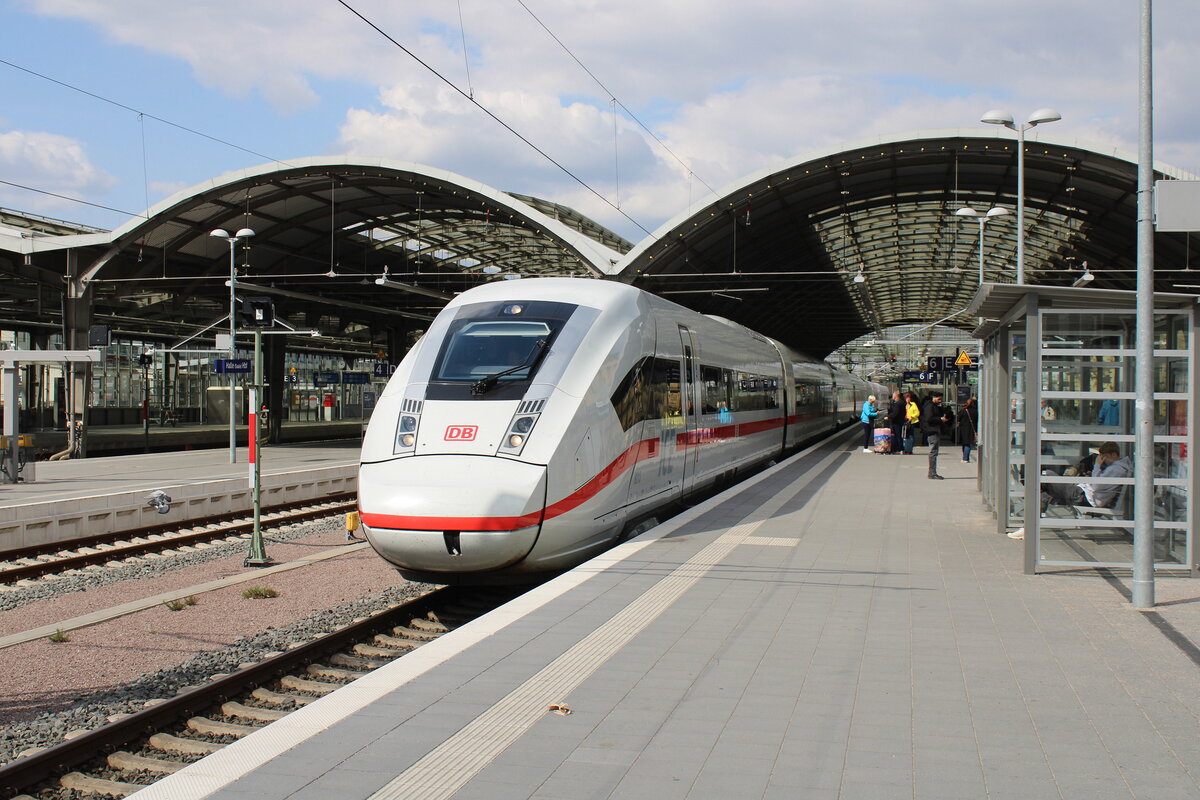 DB 401 568 "Crailsheim" als ICE 707 von Hamburg-Altona nach München Hbf, am 24.10.2022 in Halle (S) Hbf.