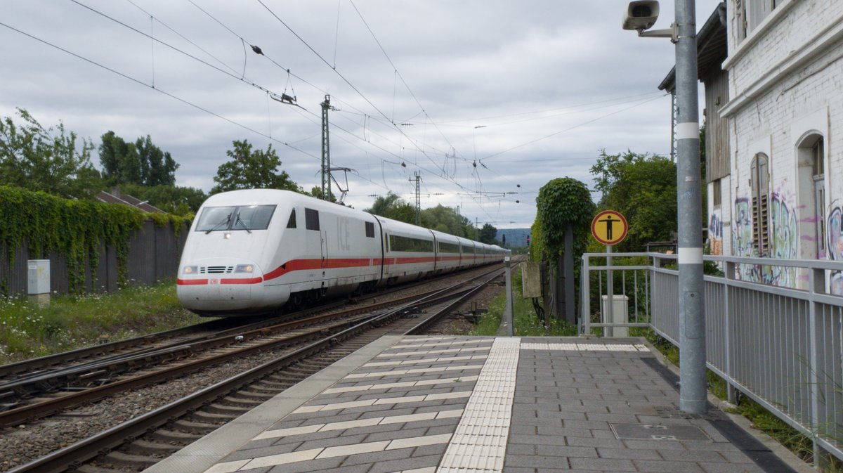 Eine Baureihe 401 (ICE 1) als ICE 74 nach Kiel Hbf durchfährt Karlsruhe-Hagsfeld am 5. Juli 2020 um 12:58 Uhr.
