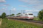 Nachschuss auf 401 080-7 "Castrop-Rauxel", als dieser am Nachmittag des 25.05.2020 als Ersatz-ICE 2872 (Basel SBB - Hamburg Altona) für den ICE 72 bei Buggingen über die Rheintalbahn durchs Markgräflerland in Richtung Freiburg (Breisgau) fuhr.