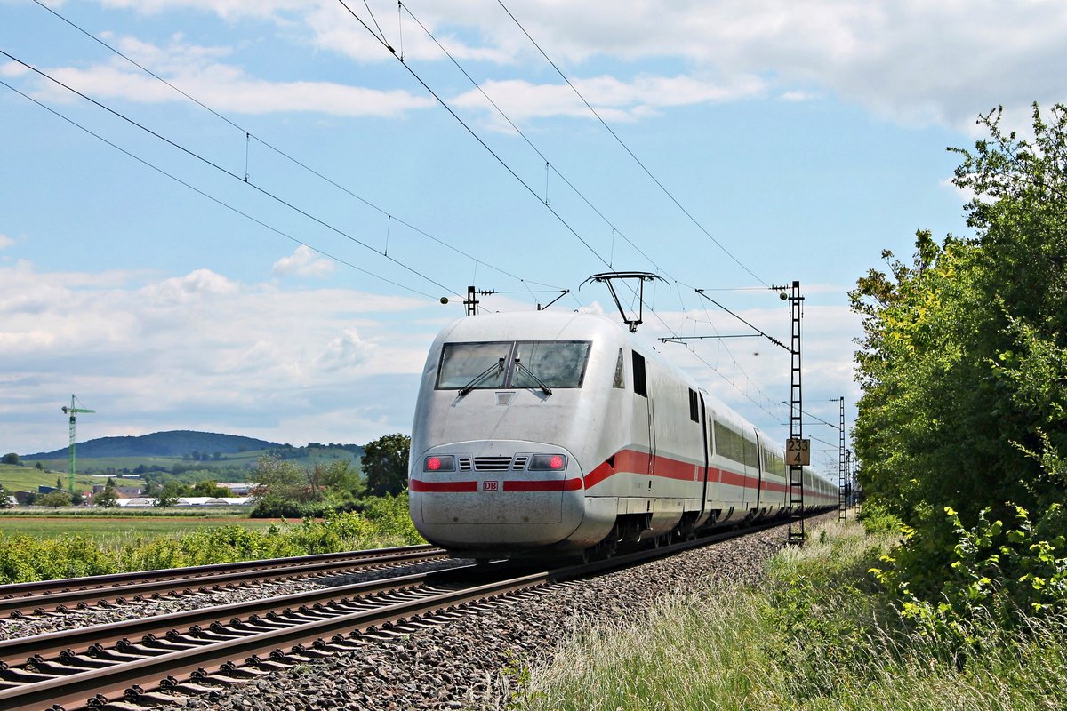 Nachschuss auf 401 588-9 "Hildesheim", als dieser am Nachmittag des 25.05.2020 als ICE 279 (Berlin Ostbahnhof - Basel SBB) nördlich von Hügelheim über die Rheintalbahn durchs Markgräflerland in Richtung Müllheim (Baden) fuhr.