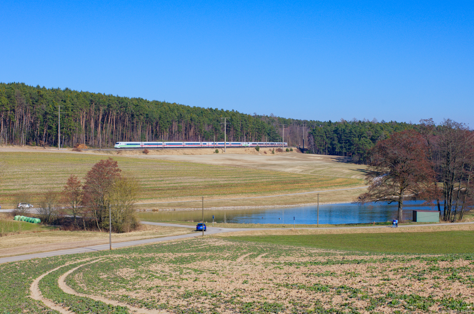 Der vermutlich letzte Frühling der Baureihe 402 hat begonnen, hier eilt der Triebzug mit dem Taufnamen Altenburg von der Nordsee seinem Zielbahnhof Köln entgegen.
