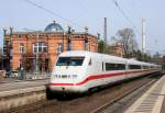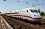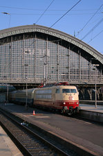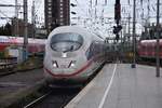 Köln Hbf am 29.05.2025, 17:25 Uhr: 101 087-5 zieht ICE 808 019-4 "Hagen" über die Hohenzollernbrücke und auf Gleis 7 durch den Hauptbahnhof. Das Foto zeigt den orangefarbenen Kupplungsadapter vom Haken der Schraubenkupplung der 101 auf die Scharfenbergkupplung des ICE.