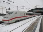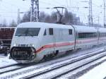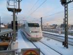D-DB 402 024-4 (TZ 224) (Saalfeld (Saale)) fuhr am 24.11.2025 als ICE 681 durch den ersten Schnee des Winters 25/26 nach München Hbf (MH). Hier bei der Ausfahrt aus dem Lübecker Hbf (AL).