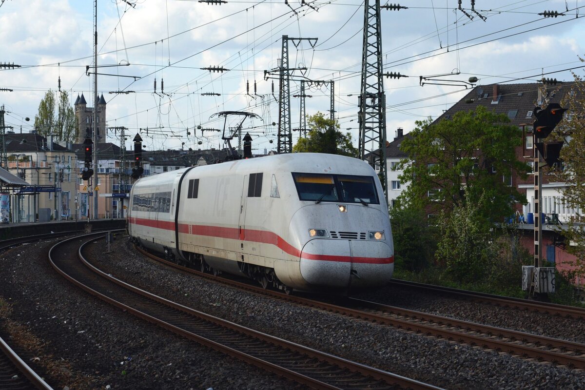 Durchfahrt am veregneten 28.02.2014 vom 402 029-3/808 029-3 "Templin" und der zweiten Einheit 402 022-8/808 022-8 "Eberswalde", die als Ersatz für einen ausgefallenen 401 als ICE 279 (Basel SBB - Berlin Ostbahnhof) fuhren, in Müllheim (Baden).