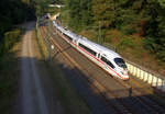 Der ICE3 aus Frankfurt am Main nach Brüssel-Süd(B) und kamm aus dem Aachener-Buschtunnel aus Rictung Aachen-Hbf und fährt in Richtung Hergenrath(B). Aufgenommen von einer Fußgängerbrückein Preusswald bei Aachen.