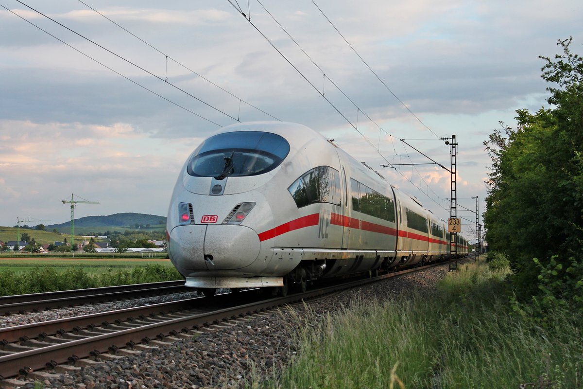 Nachschuss auf 403 505-1 "Baden-Baden", als dieser am Abend des 19.05.2020 als ICE 201 (Köln Hbf - Basel SBB) nördlich von Hügelheim über die Rheintalbahn durchs Markgräflerland in Richtung Müllheim (Baden) fuhr.