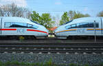 Am Sonntag, 01. Mai 2022, in Würzburg mit der Kamera gesehen: ICE 403 026 "Regenbogenstreifen" im Doppelpack mit einem weiteren ICE 403 als ICE 627 Dortmund Hbf (11:22) - Würzburg Hbf (15:01/15:04) - München Hbf (17:06).