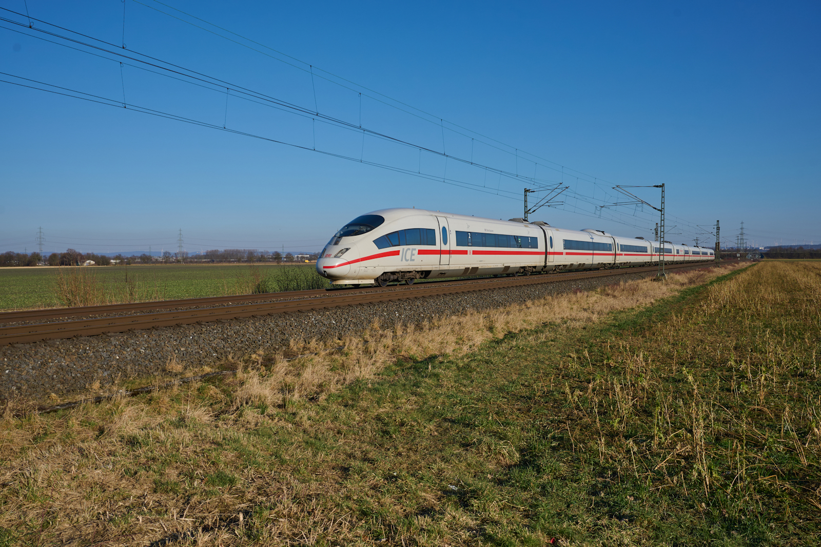 403 035 "Konstanz" und 403 009 "Aalen" waren am 6. April 2024 bei Vierkirchen in Richtung München unterwegs.