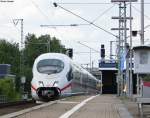 RHEINE (Kreis Steinfurt), 31.05.2025, ein ICE als äußerst seltener Gast im Bahnhof Rheine: ICE 1014 nur heute von Karlsruhe Hbf bei der Ausfahrt nach Norddeich Mole
