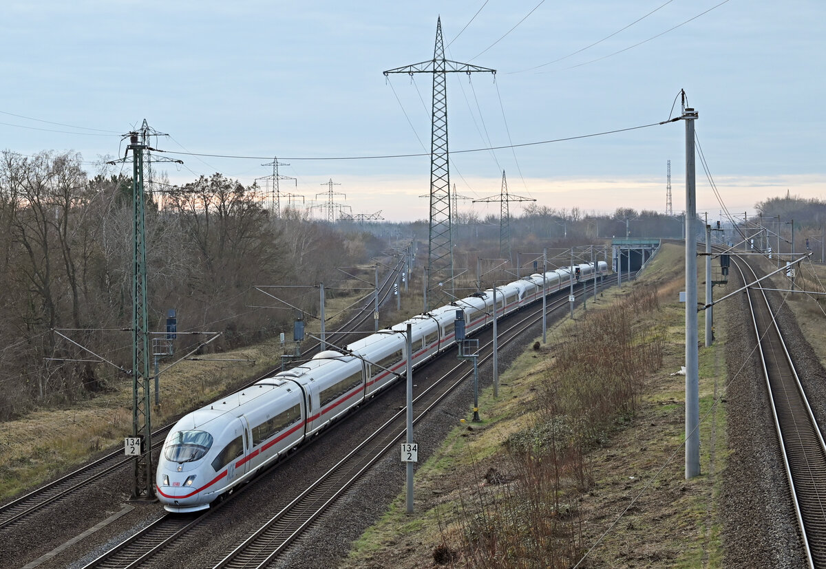 Eine Doppeltraktion der BR 403 war am 03.12.25 als ICE 1006 unterwegs nach Berlin als Holzweißig in Fahrtrichtung Bitterfeld passiert wurde.