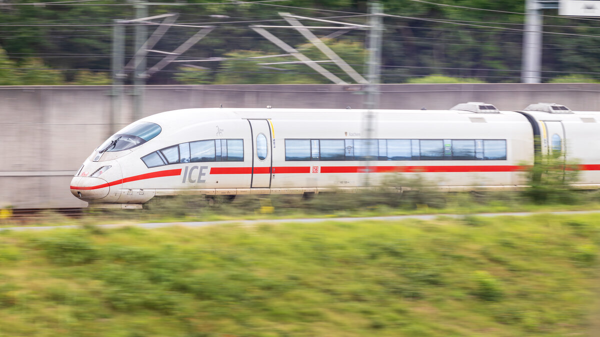 Die 111 150-9 der DB mit RE 7 (Krefeld - Rheine) beim Halt und ICE 3 bei der Durchfahrt in Köln Messe/Deutz , DEN 05.12.2015