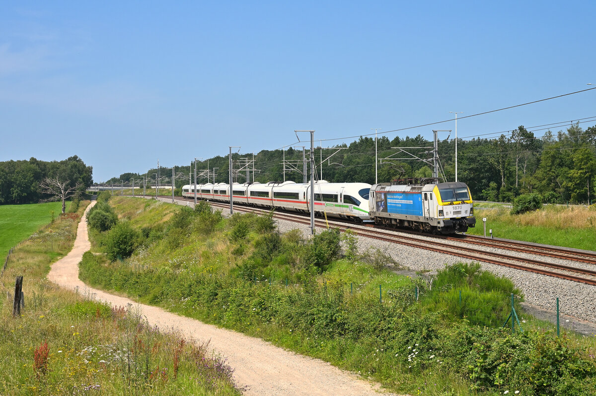 406 004 hatte am 06.04.2025 nur noch wenige Einsatztage vor sich. Als ICE 817 von Köln nach Frankfurt fuhr er in den Bahnhof von Montabaur ein. Michael Brunsch
