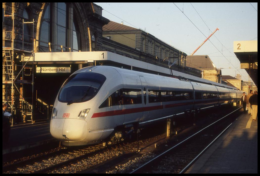 Ein damals neuer ICE-T 411510 steht hier am 16.10.1999 im HBF Nürnberg.