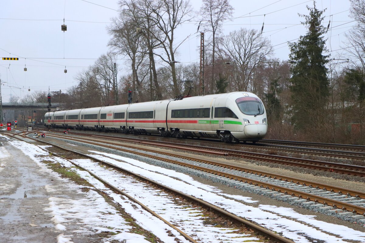 Nachschuss auf 411 574-7 (Tz 1174 "Hansestadt Warburg") und 411 525-9 (Tz 1125 "Arnstadt") als ICE 1506 (Linie 28) von München Hbf nach Hamburg-Altona, die Lutherstadt Wittenberg Hbf auf Gleis 3 verlassen.