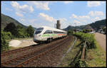 Ein ICE T ist hier in Oberwesel am 27.06.2024 um 15.28 Uhr in Richtung Koblenz unterwegs.