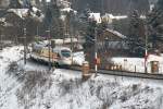Ein ICE-T der BR 411 rauscht am 02.01.2010 durch Bitterfeld.