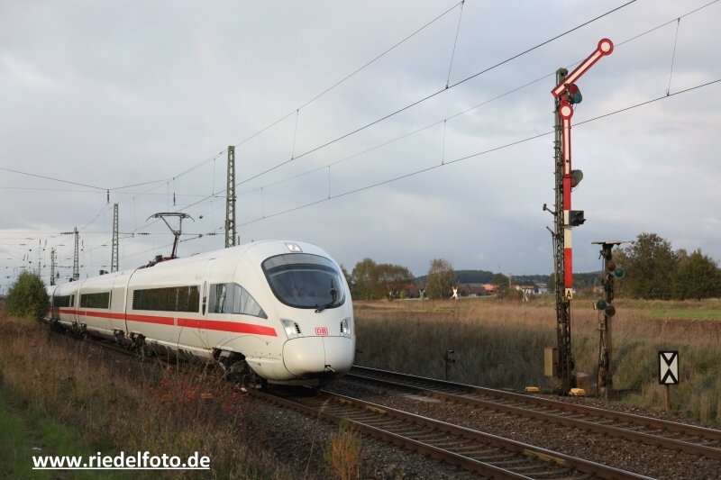 411 058 DB Fernverkehr "Falkenberg/Elster" als ICE 91 (Wien Hbf - Hamburg-Altona) bei Batzhausen, 10.10.2021