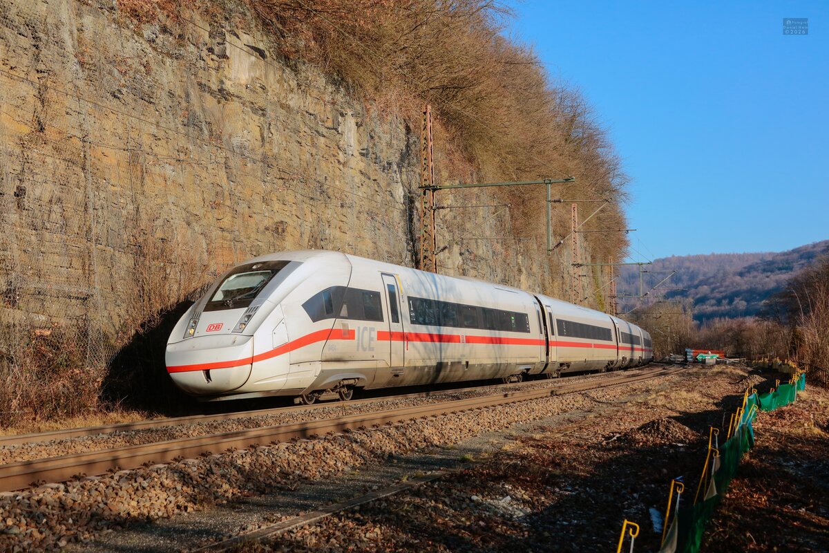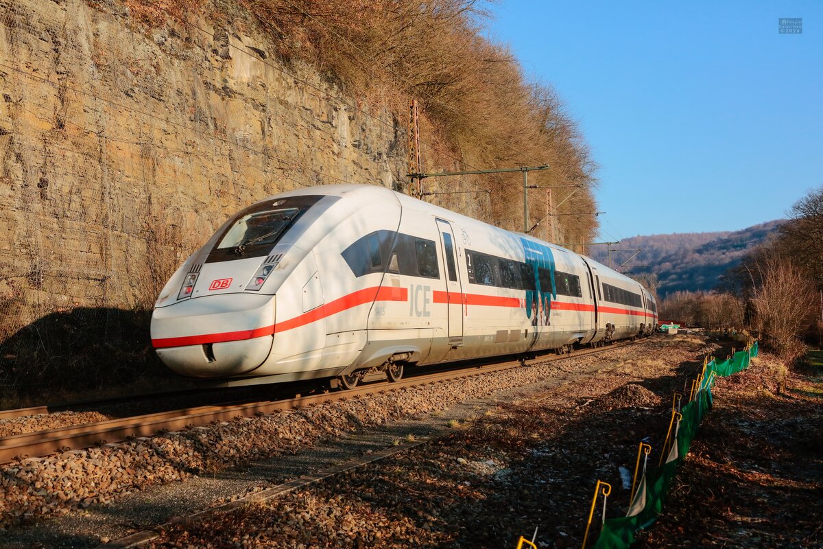 412 212 war als "ICE 116" nach Frankfurt unterwegs. Aufgenommen am 3. Februar 2026 bei Axdorf iim Chiemgau.
