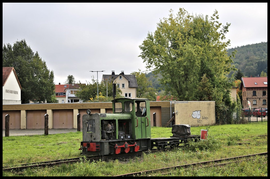 Diese Diesellok LOTTE gehört zum aktuellen Fahrzeugbestand der Dampfkleinbahn Bad Orb. Sie wird in der Regel für den Rangierdienst in Bad Orb genutzt. Nur in Fällen der Brandgefahr ersetzt sie die Dampflok EMMA. Hier hat sie ihren Rangierdienst für die erste Zugfahrt am 6.10.2024 beendet und wartet im Bahnhofsbereich von Bad Orb auf die nächste Aufgabe. Gerd Hahn