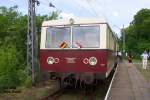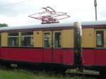 Erste Ansätze eines Peenemünders, wenn man genau hinsieht: S-Bahn mit Stromabnehmer. Ansonsten ist der Zug noch im Zustand der letzten Nutzung in Berlin. 5.6.06