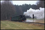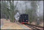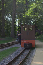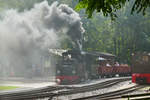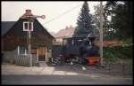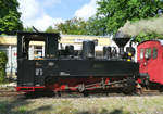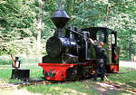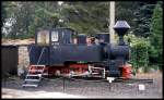 03. August 2003, Muskauer Waldeisenbahn, Lok 99 3312 in Bad Muskau. Die als "Diana" (Göttin der Jagd) benannte ehemalige Feldbahnlok wurde 1912 von Borsig hergestellt und am 21.10.1912 an die Gräflich von Arnimsche Kleinbahn ausgeliefert. Nach zwischenzeitlicher Abstellung und Verwendung als Denkmallok konnte sie der Verein Waldeisenbahn Muskau 1994 erwerben und bis 1998 im Dampflokwerk Meiningen betriebsfähig aufarbeiten lassen.