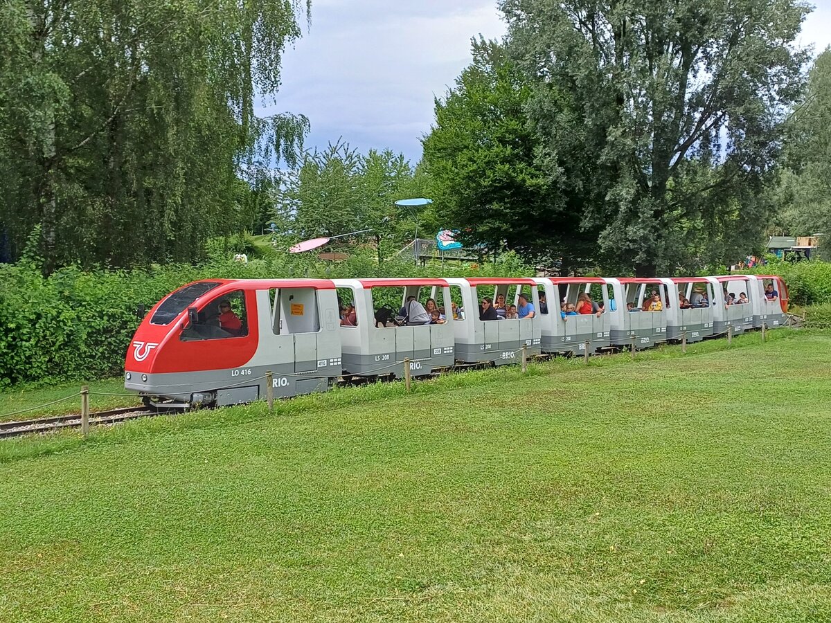 Blick in den Führerstand vom "BRIO Express LO 416" am 22.07.2024 im Ravensburger Spieleland.