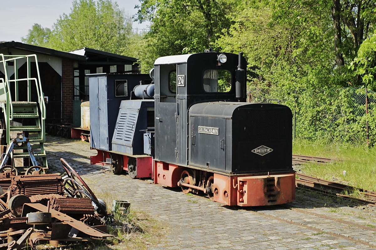 Nach fast einjähriger Unterbrechung wegen (nach Ansicht der Aufsichtsbehörde) nicht erfüllter Brandschutzauflagen waren am 22.04.2019 wieder Züge auf der Gillbachbahn unterwegs. Dampflok Nr. 4, die gerade in Oekoven Gleis 12 ankommt, wurde 1941 als Fabrik-Nr. 9294 von der Lokomotivfabrik Jung/Jungenthal gebaut und an die Bauunternehmung Peter Bauwens in Köln geliefert. Nach ihrer Ausmusterung stand sie bis 1982 auf einem Kinderspielplatz in Köln-Wesseling und wird nach ihrer Wiederaufarbeitung seit 1995 auf der Gillbachbahn eingesetzt. Ob und wie lange die Bahn noch verkehren kann ist momentan unsicher, da die behördlich verlangten Brandschutzauflagen Kosten in Höhe von möglicherweise mehr als 60.000 Euro verursachen werden.
