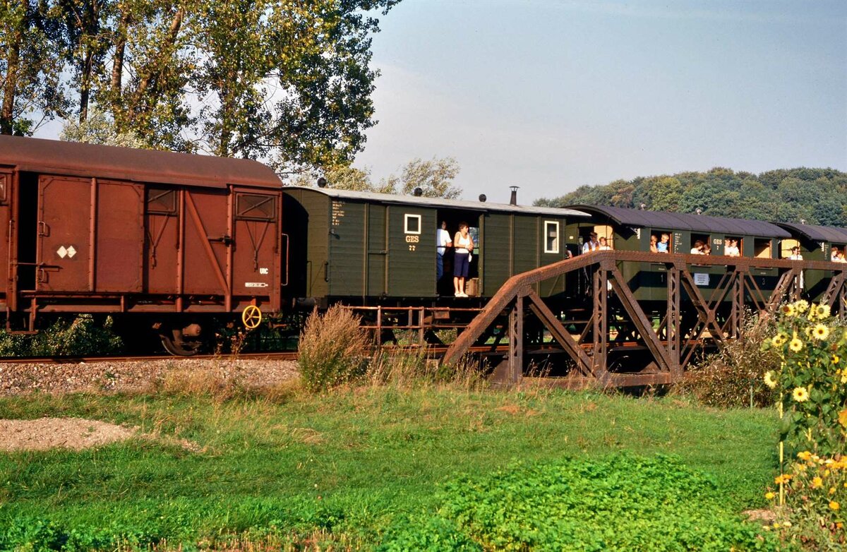 Eine der wenigen Sonderfahrten auf der DB-Nebenbahn Kirchheim-Weilheim fand am 22.09.1985 statt mit der Lok 236 262-2 (Baureihe V 36), welche hier leider etwas versteckt ist. Die Bahn wurde leider nicht wieder aufgebaut, obwohl sie Chancen dazu gehabt hätte. Frank Nowotny