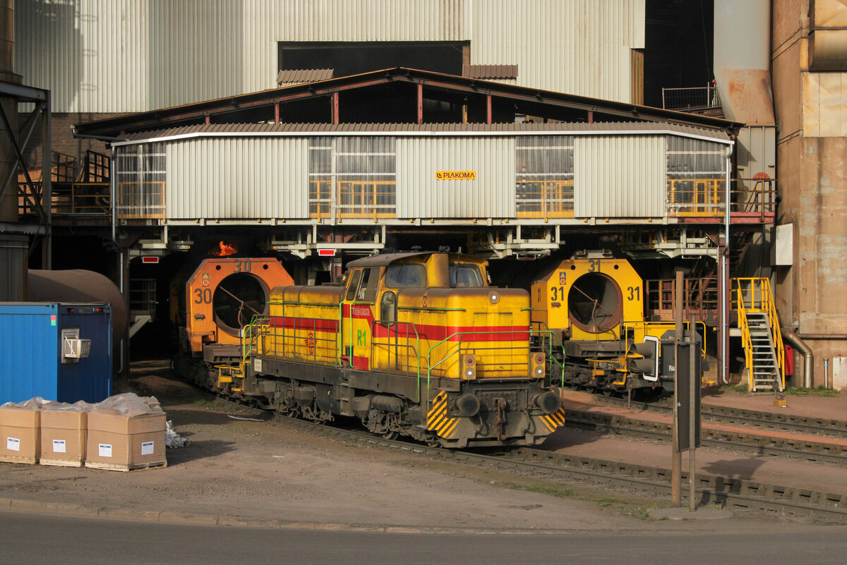 Back on Track: Lok 72 (Henschel 31573/1972) ist nach ihrer Hauptuntersuchung seit Mitte Januar wieder zurück. Hier rangiert sie am Völklinger Saarufer. (1. Februar 2025)