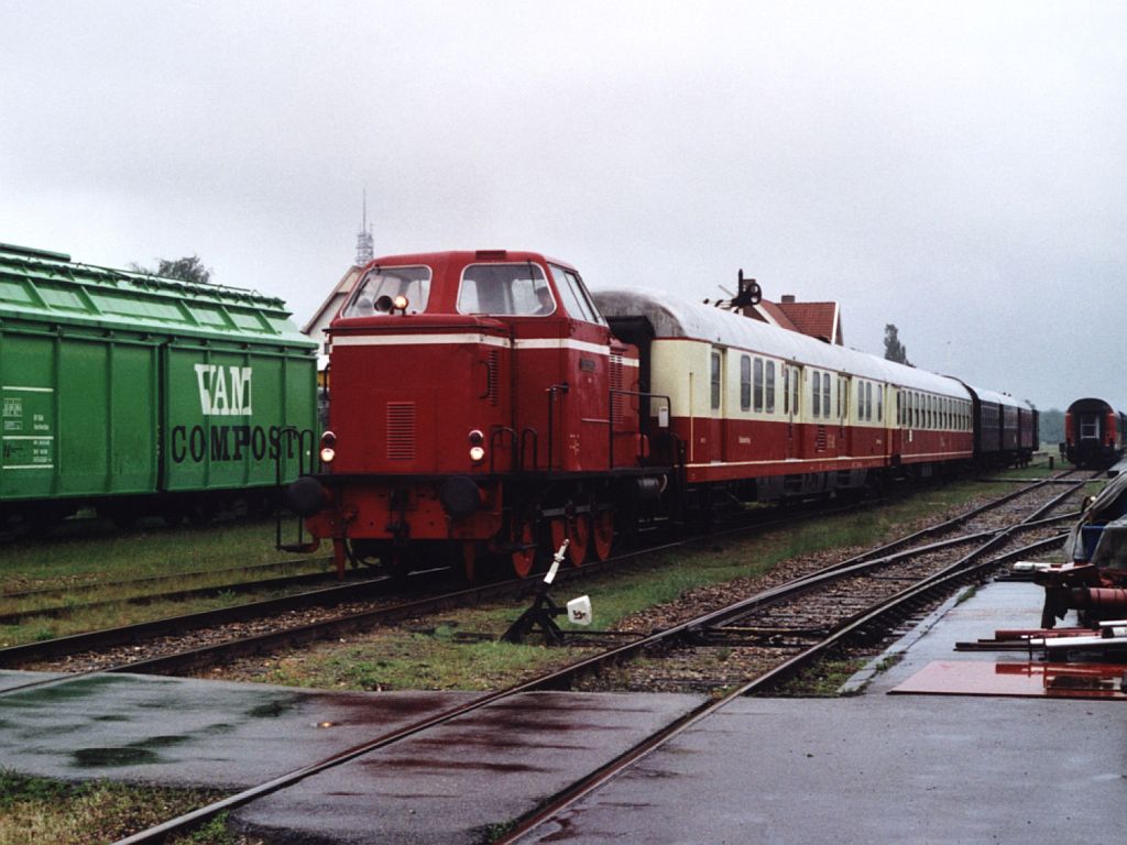 Lok 12 (ehemalige DL1 der Wittlager Kreisbahn) der Stichting Stadskanaal Rail (STAR) mit einem Museumszug Stadskanaal-Veendam auf Bahnhof Stadskanaal am 25-05-2006. Date Jan de Vries