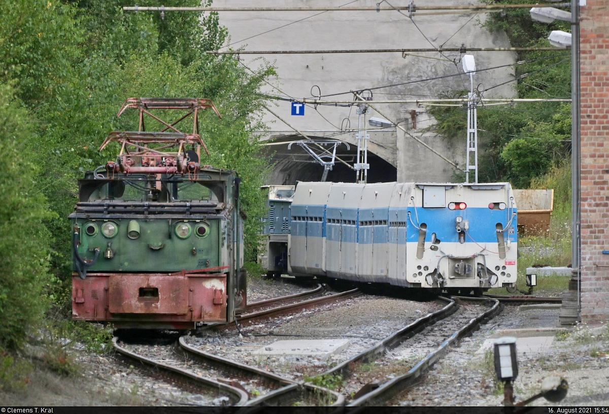 05.04.2014 Meuselwitz, Kohlebahnen Haselbach e.V.; eine zweite 900-mm-E-Lok aus dem VEB LEW Hennigsdorf, abgestellt im ehem. Ringschuppen (heute Ausstellungs -u. Veranstaltungsraum, sog. Kulturbahnhof Meuselwitz)