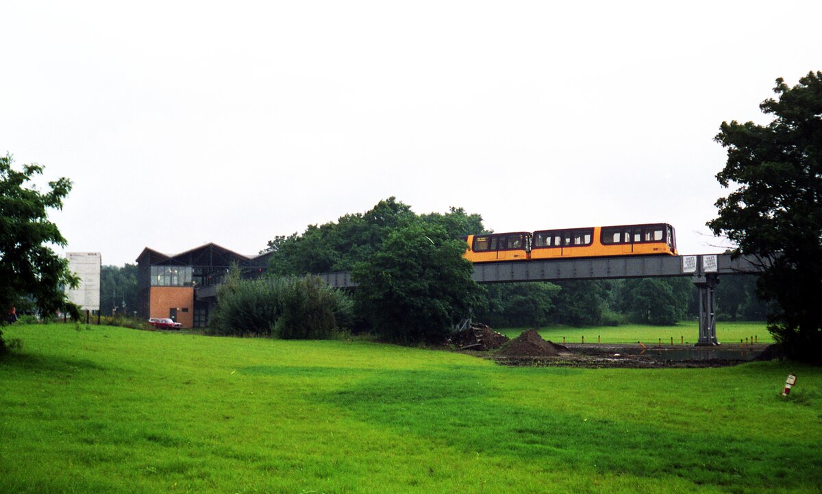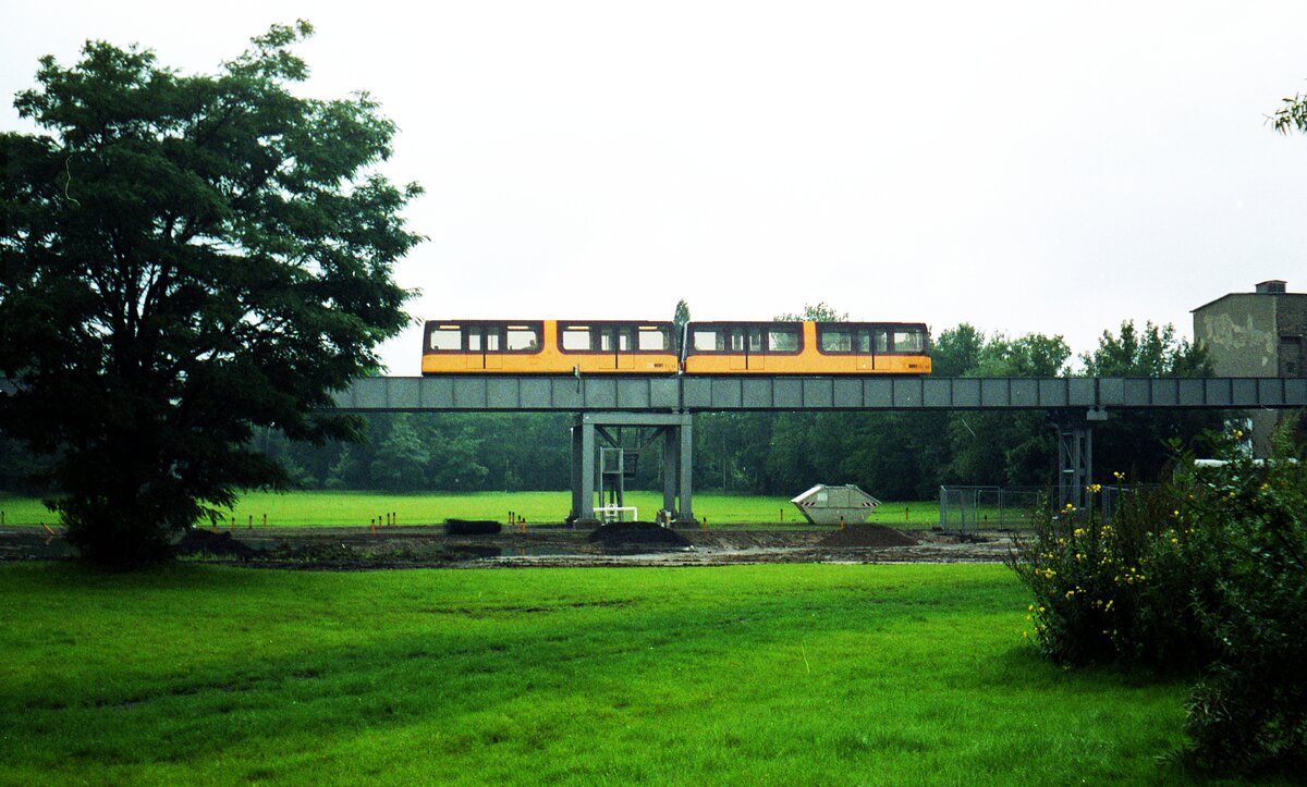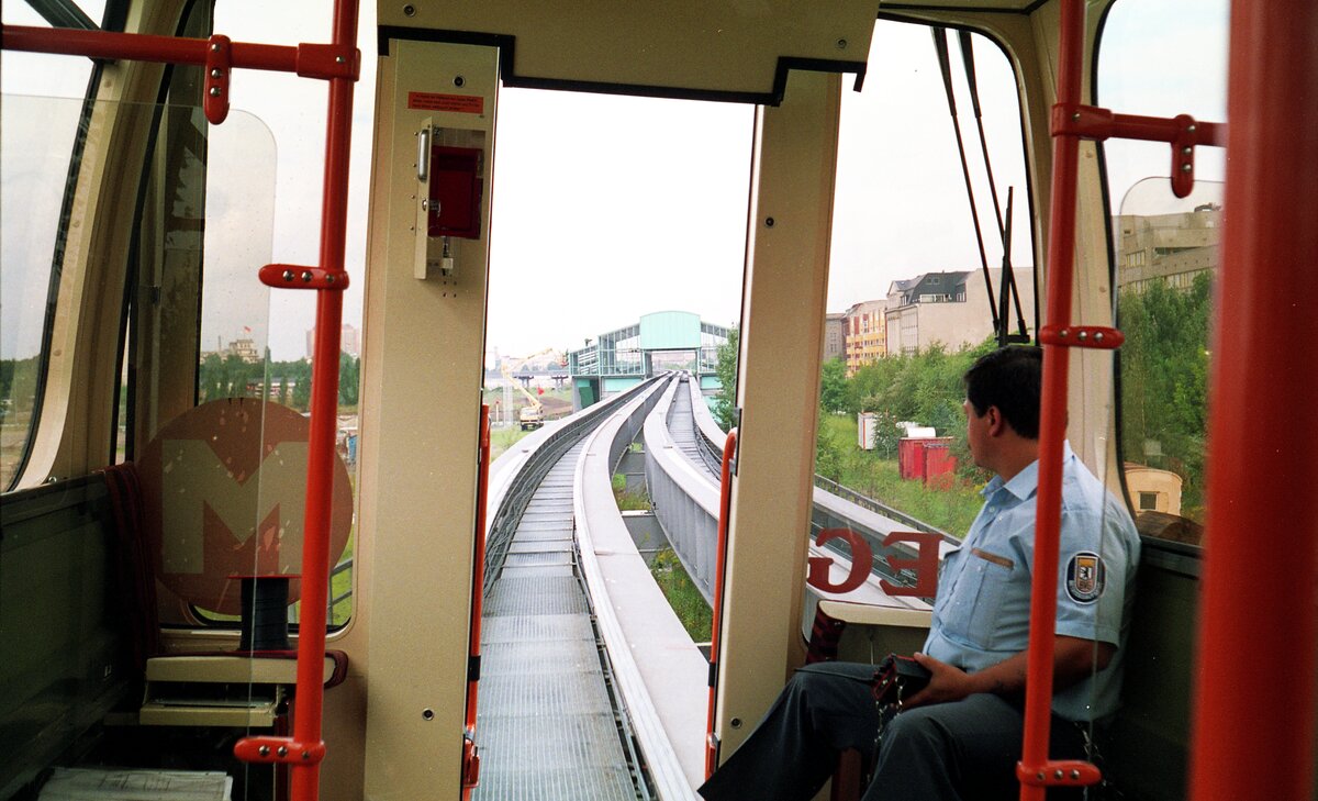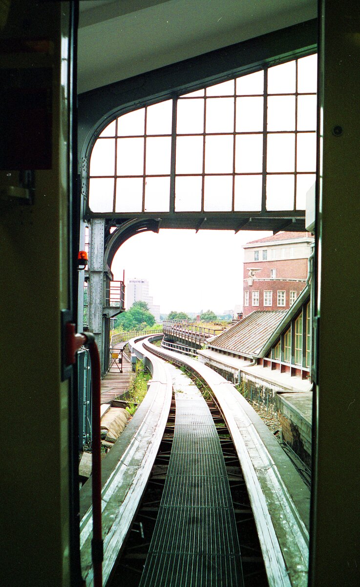 M-Bahn Berlin__Blick während einer Testfahrt aus der Bahn auf den Bhf. 'Bernburger Str.'.__28-08-1987